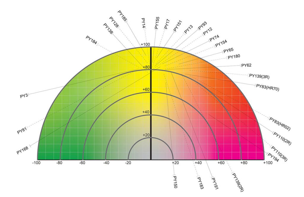 yellow, slightly red than pigment yellow 13; good plasticizer resistance and heat stability in plastic PVC, light resistance Grade 7 (1 / 3SD), light fastness grade 5-6 (1 / 25sd), color strength slightly lower. It is mainly used in plastic HDPE with temperature resistance of 260 ℃ / 5min and dimensional deformation. It is also suitable for colouring polystyrene and polyurethane.